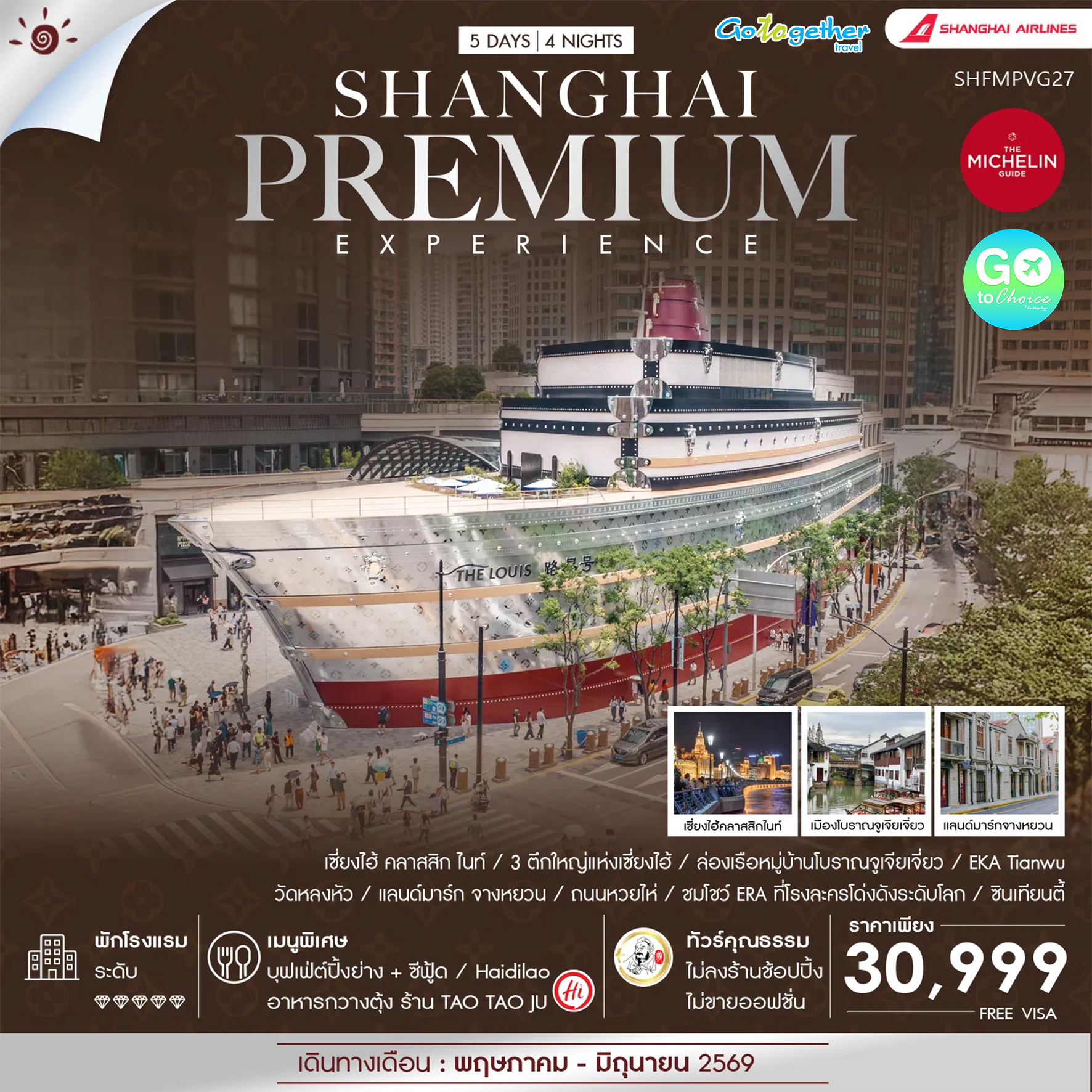 ทัวร์เซี่ยงไฮ้ พรีเมียม สัมผัสเสน่ห์ความทันสมัยผสมผสานกลิ่นอายคลาสสิกของมหานครเซี่ยงไฮ้แบบจัดเต็ม พร้อมเที่ยวเก็บไฮไลต์เด็ด เช่น ล่องเรือชมหมู่บ้านโบราณจูเจียเจี่ยว สัมผัสวิถีชีวิตริมน้ำสุดสโลว์ไลฟ์ และตื่นตาตื่นใจไปกับความยิ่งใหญ่ของ 3 ตึกยักษ์แห่งเซี่ยงไฮ้ พร้อมชมวิว เซี่ยงไฮ้ คลาสสิกไนท์ ที่สวยงามระดับโลก พิเศษ! พาท่านชม โชว์ ERA กายกรรมชื่อดังระดับโลก ณ โรงละครสุดล้ำ และเช็กอินแลนด์มาร์คใหม่ล่าสุดอย่าง The Louis ครบทั้งสายกิน สายเที่ยว และสายคอนเทนต์ในทริปเดียว
