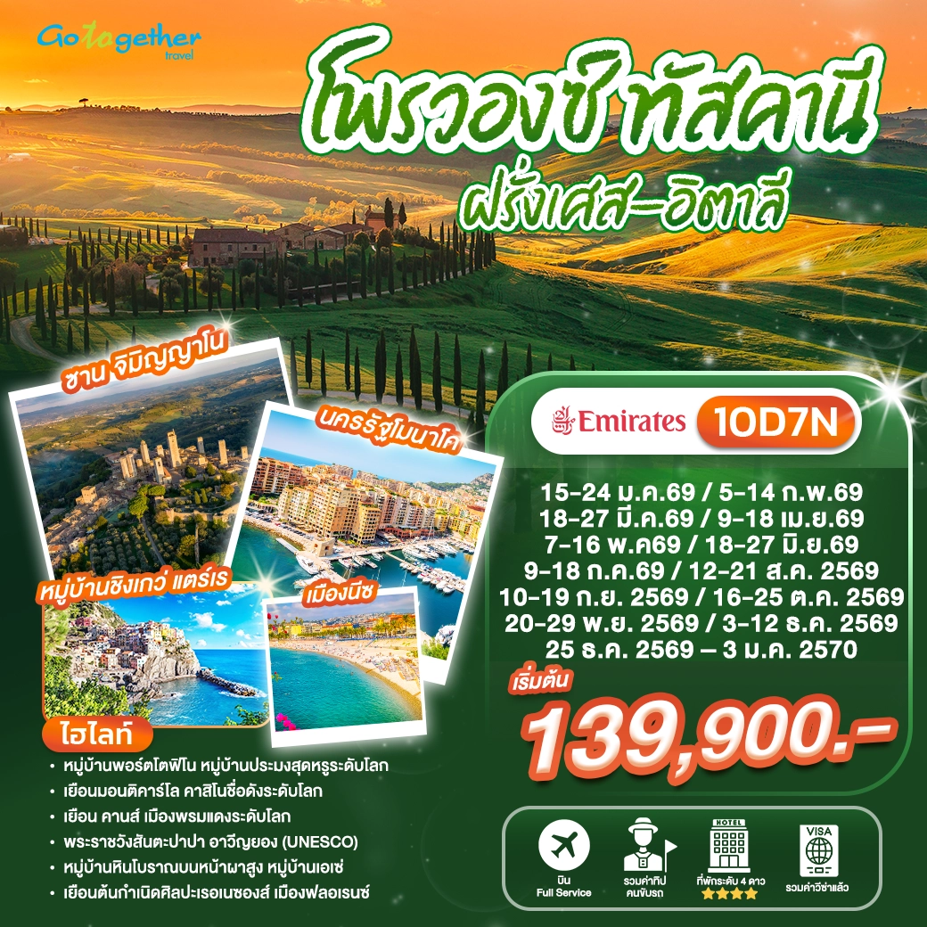 ทัวร์โพรวองซ์ ทัสคานี 10 วัน ปี 2569 – 2570